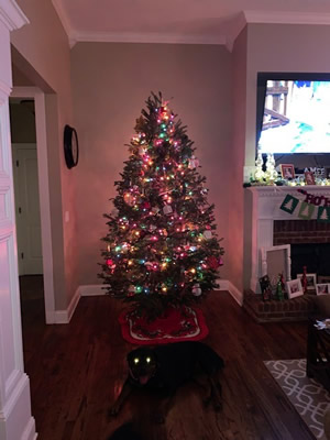 This was our first tree from you, and it surely won’t be our last. The tree arrived safely and in perfect condition, right on schedule as promised. It’s a lovely tree, beautifully green, supple, and happily drinking water every day. We could not be happier. Nor could our bulldog, who loves to curl up on her holiday cushion virtually beneath the lower branches. The cats, too, for that matter. So the whole family is enjoying the tree. Thanks again for your great service. We’ll be in touch next November. Meantime, best wishes for a Great New Year.